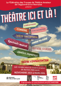 Ce spectacle est joué dans le cadre du festival Théâtre ici et là ! organisé par la Fédération des troupes de théâtre amateur de l’agglomération rennaise. Retrouvez l’intégralité de la programmation en cliquant sur l’affiche.