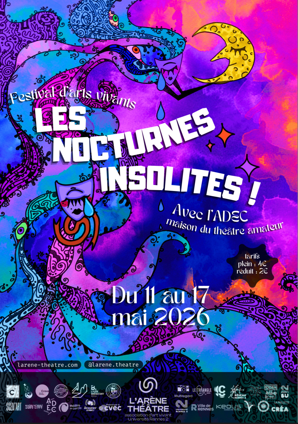 Dans un registre camp, trashy et absurde mêlant culture populaire et mélodrame ancien, s’alterneront scènes jouées et performances de lipsync drag. De prince à princesse, de grande reine à misérable troubadour, les Cunts de la nuit vous invitent à entrer dans leur salle de projection et imaginer avec elles leurs folles trans-formations…